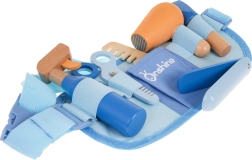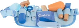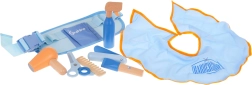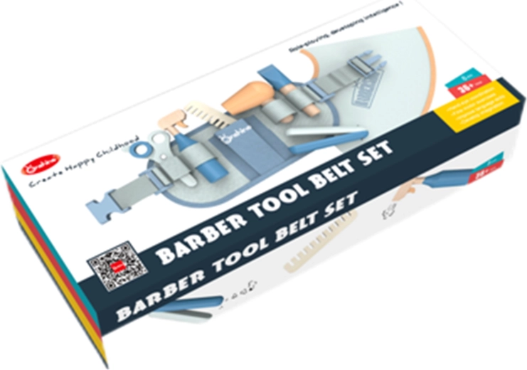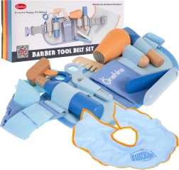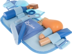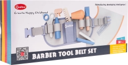 Træsæt til frisører er designet til børn fra 3 år. Sættet indeholder forskellige frisørværktøjer lavet af sikre materialer, der støtter kreativitet og udvikling af finmotoriske evner.