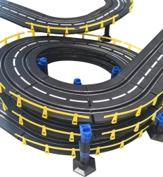 Kørselsretning og hastighed styres med fjernbetjening. Hvert køretøj styres af sin egen fjernbetjening. Banen er lavet af materialer af højeste kvalitet, hvilket sikrer dens holdbarhed og styrke.
