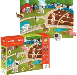 Dodo Magnetisk Gård er et fremragende valg til små opdagere. Børn sammensætter en gårdscene, placerer dyr og genstande på den magnetiske plade og skaber deres egne fortællinger. På den måde udvikler de naturligt deres sproglige færdigheder, fantasi og koncentration.