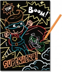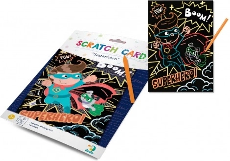 DODO skrabe-billede med superhelt er et ideelt valg til børn, der elsker at skabe og bruge farver. Følg blot de fortrykte linjer og brug skrabeværktøjet til gradvist at afsløre den strålende baggrund – resultatet er et originalt billede, som også egner sig som dekoration.