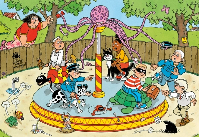 Opdag den legende verden af Jan van Haasterens illustrationer i Junior-udgaven. Denne muntre scene fra en karrusel bugner af små jokes og forfatterens typiske motiver – fra hajfinnen til uventede figurer i mængden. Takket være de større og let håndterbare brikker er det også tilgængeligt for yngre børn.