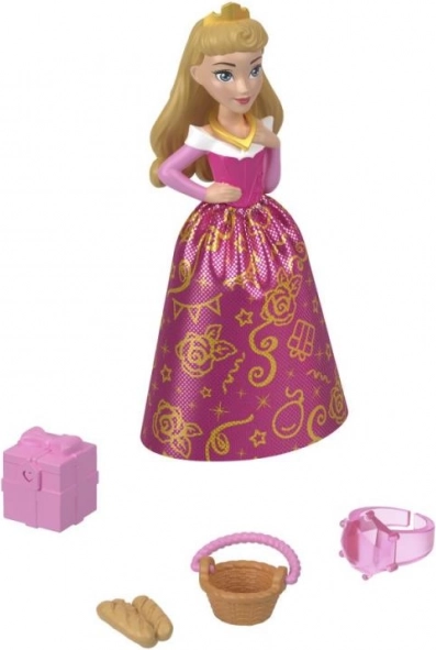 I pakken finder du yderligere 5 overraskelser: et blødt skørt med party-mønster, en ring til barnet og tematiske småting til festen. Låget på emballagen kan desuden bruges som en børnetiara. Saml alle prinsesserne – blandt de mystiske figurer kan der være Ariel, Tiana, Mulan, Cinderella, Belle og Aurora.