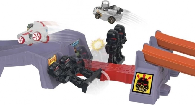 Oplev spændende løb i universet HOT WHEELS RACERVERSE og STAR WARS. Slip Grogu- og Mandalorian-bilerne løs fra banens top, sus gennem porte som lyssværd og se, hvem der først springer over forhindringen med stormtroopers og passerer målstregen. Den perfekte gave til fans fra 4 år.