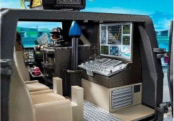 På køretøjets tag er der et tårn, hvorfra man kan affyre en krog eller en vandpil. Dette rigt udstyrede sæt med lys- og lydeffekter giver langvarig underholdning og er det perfekte tilbehør til alle PLAYMOBIL-politifans.