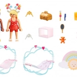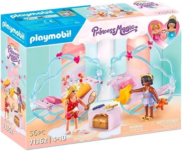 Oplev eventyr med regnbueprinsesserne til PLAYMOBILs himmelske pyjamasfest. Før de to regnbueprinsesser lægger sig i de magiske, svajende senge, pynter de sig med glitrende smykker, og rejser derefter til drømmenes og fantasiens verden med eventyrlige figurer og magiske omgivelser.