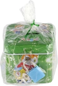 Perfekt til børn, der lærer at spare op. Sparebøssen har en solid lås, som sikrer, at mønterne bliver, hvor de skal. Fås i fire forskellige farver og byder på noget for hvert barn.