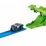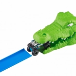 Zuru Metal Machines Krokodilleangreb er en racerbane, der trækker dig ind i en verden af actionfyldt leg. Tag udfordringen op mod den farlige krokodille, der lurer på din Monster Truck. Opnå høj nok fart til at komme sikkert forbi krokodillens kæber.