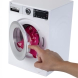 Takket være troværdig gengivelse og realistiske lydeffekter får børnene masser af sjov ved at simulere tøjvask. Vaskemaskinen er udstyret med en roterende tromle, funktion til påfyldning og tømning af vand og kan drives af batterier eller mekanisk med et håndsving.