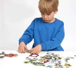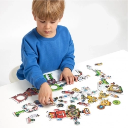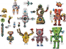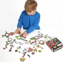 Oplev et kreativt puslespil med robottema, der indeholder 63 solide kartonbrikker, heraf 28 dobbeltsidede. Brikkerne kan kombineres frit, så børn kan samle op til 8 store robotter og derefter ændre deres udseende og funktioner uden begrænsninger. Legen udvikler finmotorik, logisk tænkning, kreativitet og tålmodighed – ideel underholdning for førskolebørn med interesse for teknik og opfindelser.