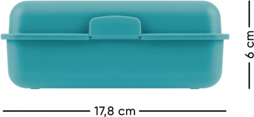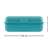Boksen måler 17,8 cm i bredden og 12,2 cm i højden, hvilket giver rigelig plads til forskellige fødevarer og småting. En sikker låsemekanisme sikrer, at indholdet bliver på sin plads.