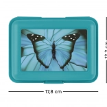Den blå Butterfly-plastmadkasse er en ideel løsning til at transportere mad. Takket være sommerfugledesignet er den ikke kun praktisk, men også stilfuld. Den er let, nem at rengøre og holdbar.