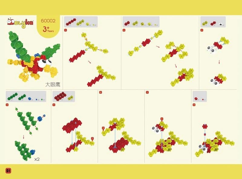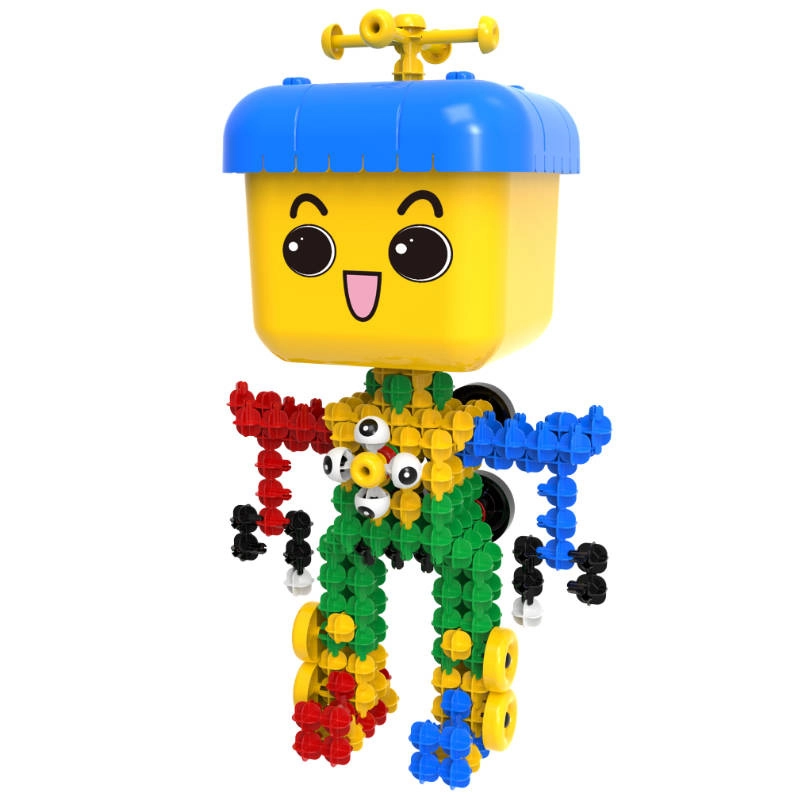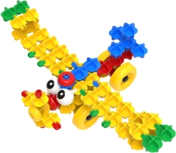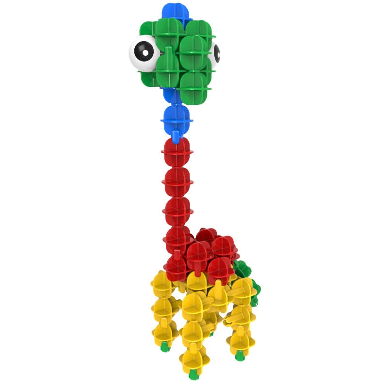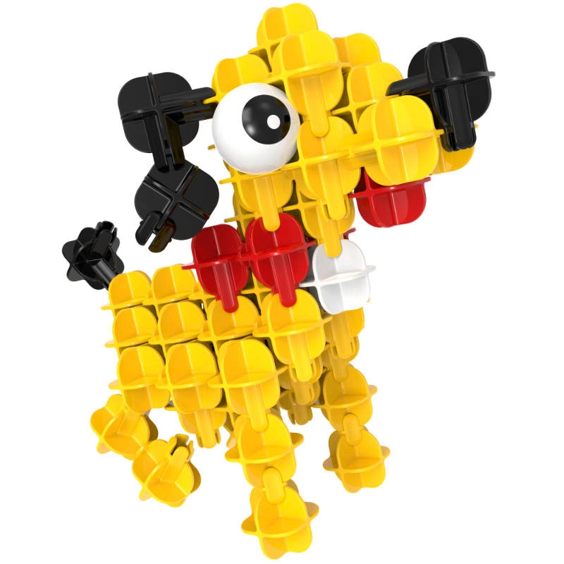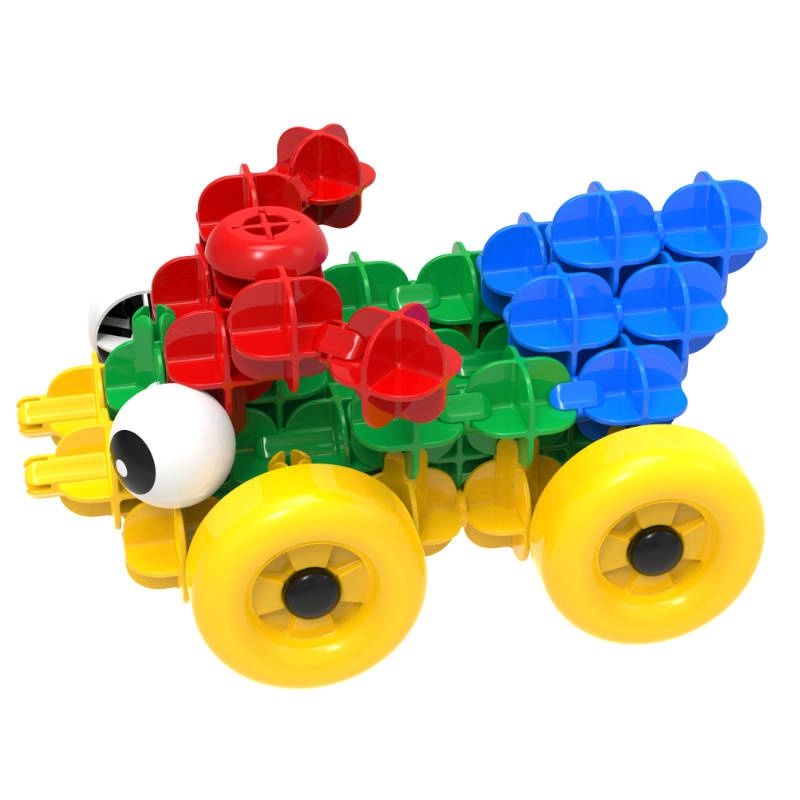 Skiver, forbindelser, hjul og øjeformede dele understøtter skabelsen af figurer, køretøjer og fantasifulde væsner. Ét sæt – dusinvis af originale modeller.