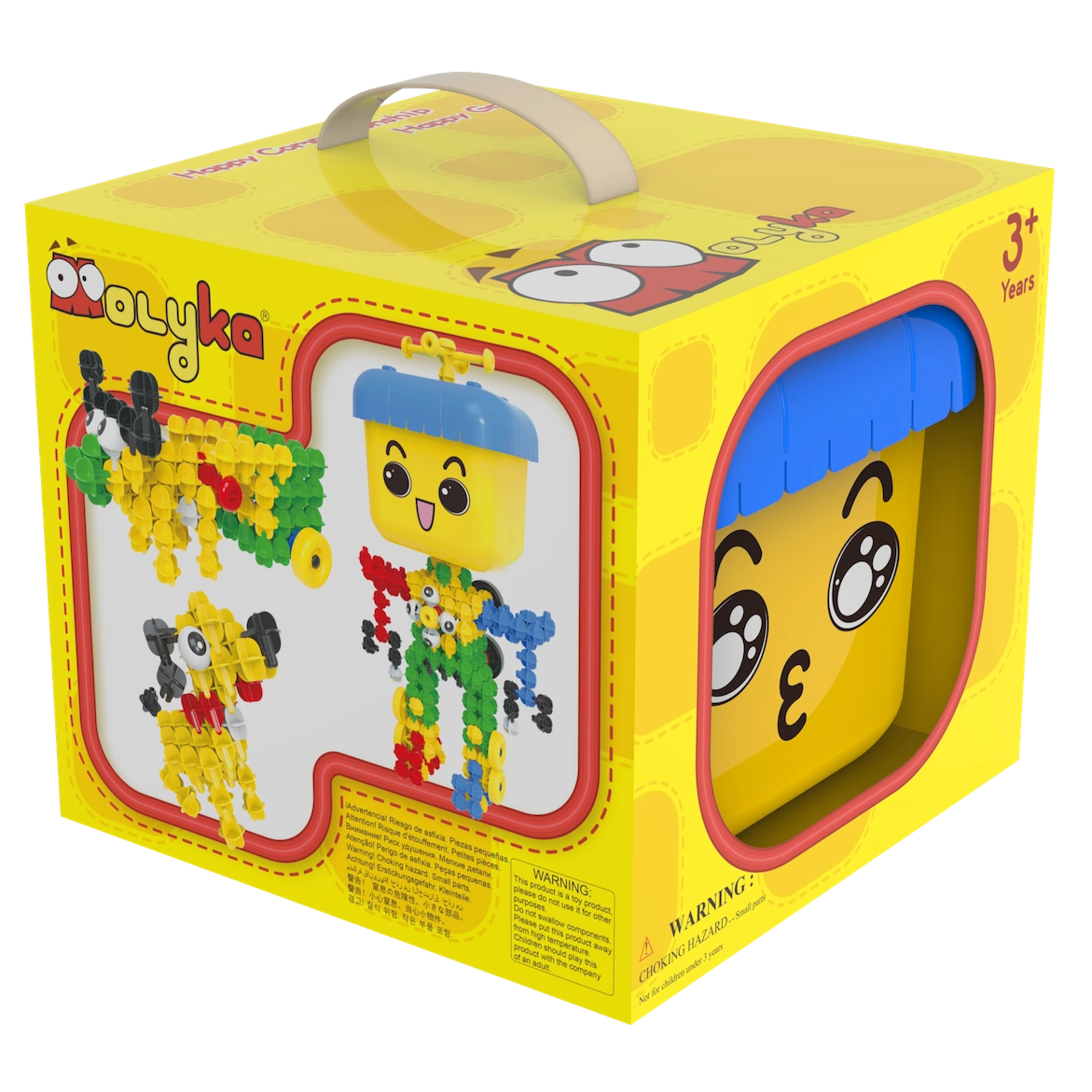Oplev glæden ved at skabe med Molyka Yellow Box med 158 farverige dele i en praktisk boks med hank. Delene klikker let sammen, har forskellige former og levende farver, så de giver børn fra 3 år timer med leg og læring – fra finmotorik over fantasi til logisk tænkning.