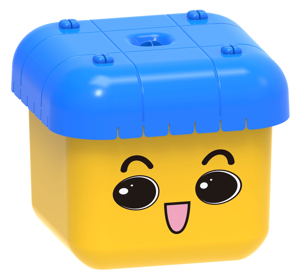 Det blå låg og det robuste håndtag gør det let at opbevare og tage med. Byggesættet er klar til turen i børnehaven, på besøg og på ferie.