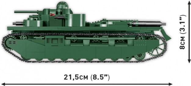 Af de 887 klodser kan du samle en kampvogn i målestok 1:35, som rummer mange detaljer, herunder fem roterende tårne med hovedbevæbning. Der medfølger også en figur af en britisk tankmand med autentiske detaljer. Sættet er ideelt til entusiaster af militærteknik og samlere.