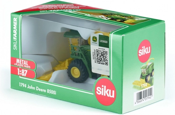 Meter for meter bevæger den imponerende mejetærsker John Deere 8500i sig gennem majsmarken. SIKU præsenterer en ny model i 8000-serien, fremstillet af materialer i høj kvalitet af metal og plastik i præcis skala 1:87. De store og massive gummibelagte hjul med dybt mønster baner let vej selv under krævende forhold. Detaljerne vil glæde enhver lille landmand. Skæret kan afmonteres og foldes sammen til den næste majsmark. Skæret kan afmonteres og foldes sammen for transport til den næste majsmark.