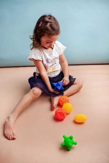 Sættet indeholder 6 sensoriske bolde i forskellige størrelser med interessante strukturer.