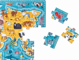 Træd ind i en verden af vidundere og inspiration med Puzzlove CzuCzu Dyr Verdenskort puslespil. Dette smukke puslespil, bestående af 60 brikker, præsenterer ikke bare kontinenter og oceaner, men også fascinerende dyr, der bor i forskellige kroge af vores planet. Perfekt til børn, der elsker dyr og stræber efter ny viden og eventyr.