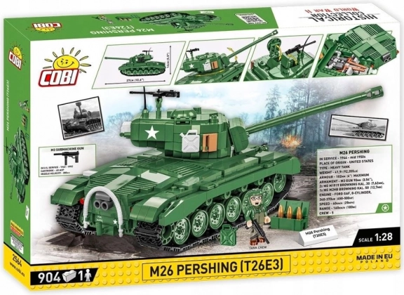 Oplev moderne amerikanske Pershing kampvogne, der deltog i de sidste måneder af Anden Verdenskrig og udmærkede sig ved deres effektivitet. Denne model af tanken er trofast gengivet i 1:28 skala ved hjælp af 904 byggeelementer fra COBI.