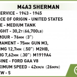 M4 Sherman var den amerikanske standard-medium kampvogn produceret mellem 1942 og 1945. Sherman var kendt for sin pålidelighed, lette produktion og gode bevæbning. Sættet indeholder højkvalitets tryk, som ikke slides, selv ved intensiv leg.