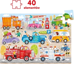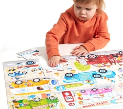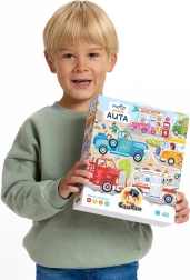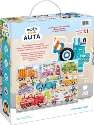 Brum, brum – spænd sikkerhedsbæltet, vi kører! CzuCzu Moto puslespil Biler vil glæde enhver lille fan af veje og maskiner. Det storformat 40-dels puslespil viser forskellige biler, lastbiler og arbejdsmaskiner i bevægelse, så børnene nemt finder deres favorit.