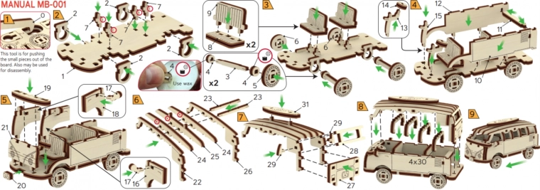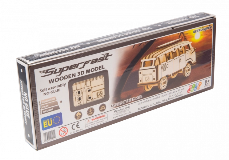 Opdag det sjove og stilfulde træ 3D-puslespil WOODEN CITY Superfast – en funktionel mekanisk model af en retro minibus, som ikke kun ser fantastisk ud efter samling, men også kører rigtig godt. Modellen samles uden lim og værktøj, er lavet af kvalitets naturlig krydsfiner og glæder med detaljeret udformning og let sværhedsgrad for hurtig og sjov bygning.