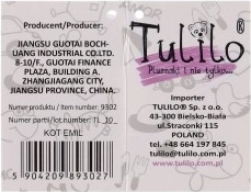 Denne plys-killing i tigerstribet design glæder ethvert barn med sin blødhed og søde udtryk. Når man trykker på maven, lyder der mjaven, som støtter sanseopfattelsen og stimulerer fantasien under legen. Takket være den kompakte størrelse på 20 cm er den ideel til rejser, barnevognen og sengen.