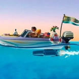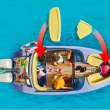 Motorbåden kan udvides med en undervandsmotor, og begge motorer kan vippes uafhængigt af hinanden. Nyd tiden ombord, og tag derefter badetøj på og hop i vandet. Ideel til drenge og piger fra 4 år.
