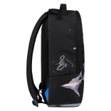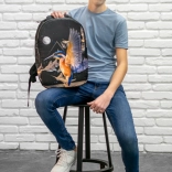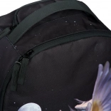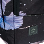 Rygsækkens design prydes af en isfugl i flugt sammen med abstrakte former og en måne. Dette markante print gør rygsækken til et naturligt blikfang.
