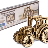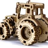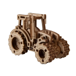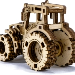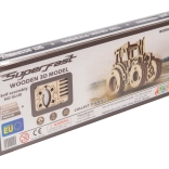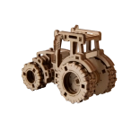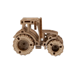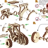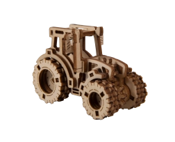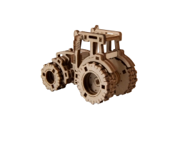 Laserudskårne elementer af krydsfiner skaber et realistisk traktorlook med tandhjul og dæk.