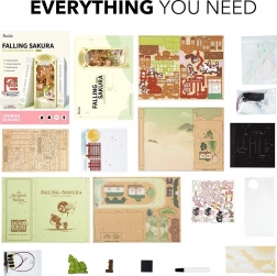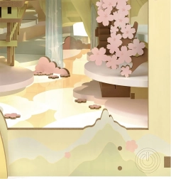 Den detaljerede japanske scene med enkel lysstyring trækker dig ind i oplevelsen. På hylden virker den som en lille passage til en verden af blomstrende kirsebærtræer.