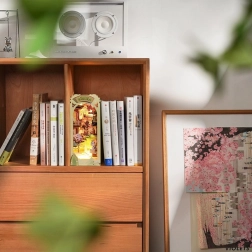Forvandl hylden til en poetisk passage mellem bøgerne. Den træbaserede bogstøtte FALLING SAKURA kombinerer et dekorativt diorama med praktisk støtte til bøger. Takket være LED-bagbelysning i en varm tone træder de fine detaljer i japansk arkitektur og kirsebærblomster frem, og aftenlæsningen får en ny dimension.