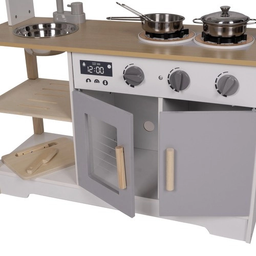ANALOG UR + Lyde - det analoge ur er placeret i øjenhøjde for barnet, og viserne er bevægelige, så barnet kan lære klokken,brænderne i køkkenetog mikrobølgeovnenklikker ved skift af skalaer! Dit barn vil være begejstret - køkkenet giver dem timer af ubekymret leg.
