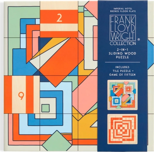 Elegant skydetræpuslespil inspireret af det ikoniske design FRANK LLOYD WRIGHT – Imperial Hotel tilbyder 2-i-1 underholdning: klassisk motivsamling og den logiske 15-spil. Kvalitetsudførelse i træ, kompakte mål og fængende skub af brikker gør det til en fantastisk gave og en stilfuld tilføjelse til skrivebordet.