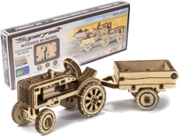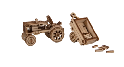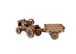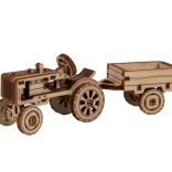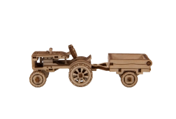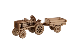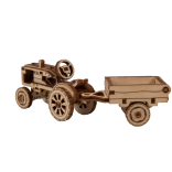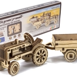 mekanisk træ 3D‑puslespil – traktor med anhænger