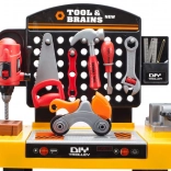 Forvandl værelset til et lille værksted med den børnevenlige arbejdsstation TOOL & BRAINS med 39 tilbehørsdele. Sikker plastkonstruktion uden skarpe kanter, masser af værktøj og funktioner – fra skruestik til lodret boremaskine med roterende bor samt organisatorer og huller til skruer. Perfekt til at udvikle finmotorik, kreativitet og rolleleg for børn fra 3 år.