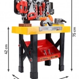 Dette realistiske børneværksted giver alt, hvad en lille gør-det-selv’er behøver. Den robuste bordplade med huller til skruer, en funktionel skruestik og en lodret boremaskine giver legen autenticitet. Den nederste aflægningshylde, ruminddelinger og kroge holder alle værktøjer overskueligt på plads.