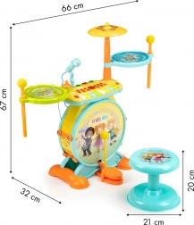 Trommer og keyboard 2i1 er designet til at efterligne forskellige instrumentlyde og inkluderer flere forudindstillede melodier. Så børn kan ikke kun lytte, men også tilføje deres eget soundtrack ved hjælp af keyboardet og trommerne. Muligheden for at forbinde med telefonen giver mulighed for at afspille yndlingssange eller karaoke sjov med tilsluttet mikrofon.