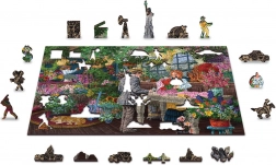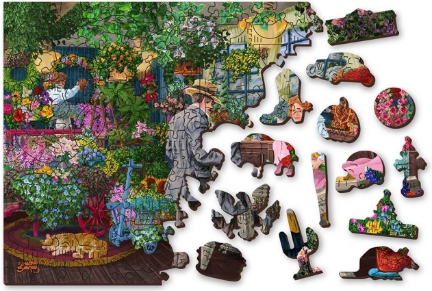Et stilfuldt træpuslespil med motiv af en livlig blomsterhandel vil glæde både elskere af detaljerede illustrationer og mere krævende puslespilsbyggere. Takket være det dobbelt-sidede design får du to puslespil i ét – forside med en farverig scene fuld af blomster og bagside med mønster til lægning efter former. Unikke udskæringer i form af dyr, personer og genstande fungerer som små figurer og giver lægningen en ny dimension.