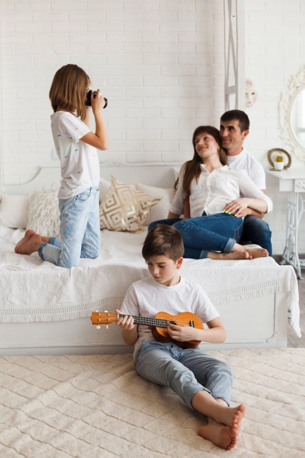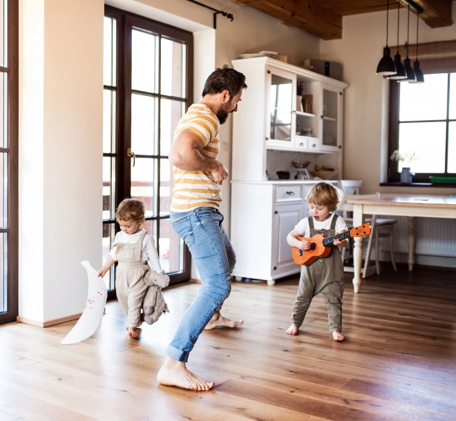 Ukulelen inspirerer til fælles musikspil og udvikler fantasi, rytme og finmotorik. Ideel til hjemmekoncerter og de første musikalske skridt.