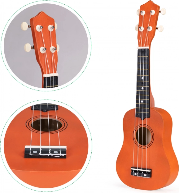 ECOTOYS ukulele er et godt valg til små musikere. Takket være de kompakte mål og den lette konstruktion ligger den godt i børns hænder, mens nylonstrengene er behagelige for fingrene. Instrumentet kan nemt stemmes, så børn kan spille både simple og mere krævende sange.