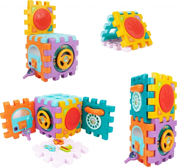 Terningen er designet, så siderne kan forbindes som et puslespil, hvilket muliggør variabel opbygning og giver børn mulighed for at skabe deres egen version af legetøjet.