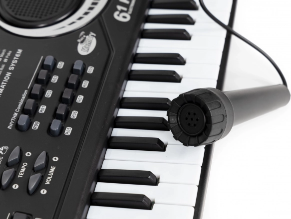Mikrofonen er designet med de yngste kunstnere i tankerne, den er let, nem at bruge og fungerer perfekt sammen med keyboardet. Takket være den kan børn fuldt ud udtrykke deres følelser og forbinde melodien med deres egen stemme.
