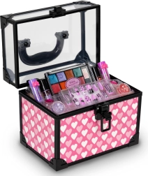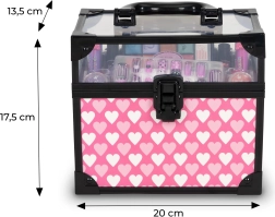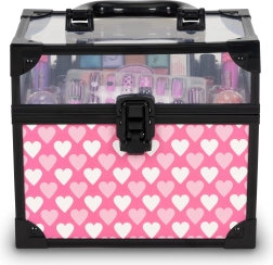 Kufferten med gennemsigtigt låg holder alt pænt organiseret, og takket være de kompakte mål er den let at tage med. Sættet indeholder lipgloss, neglelak, læbestifter, palette med gel-øjenskygger, ringe og et sæt selvklæbende negle – perfekt udstyr til kreativ makeup og udvikling af fantasien.