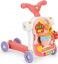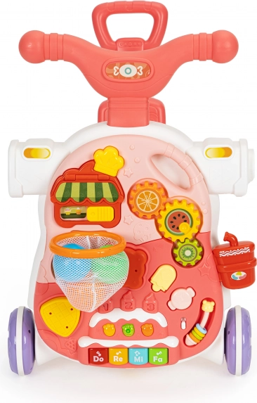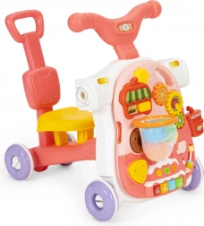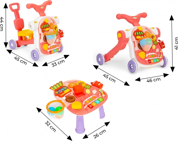 Panelet kan let omdannes til et bord ved blot at afkoble aktivitets panelet fra gåvognsrammen og montere benene. Dermed har dit barn et bord, som indbyder til leg og dermed udvikler de manuelle færdigheder.