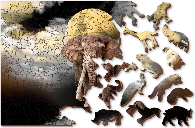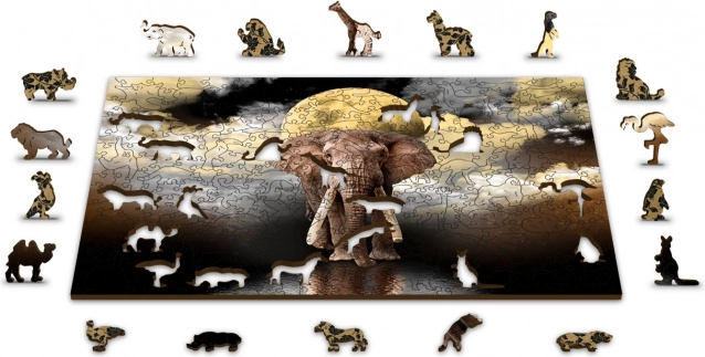 Træpuslespillet Elefantdrømme fra mærket WOODEN CITY bringer både underholdning og udfordring til puslespilsentusiaster. Puslespillet er fremstillet af højkvalitets HDF-træfiberplade og indeholder laserudskårne brikker, som sikrer glatte, splintfrie kanter. Dobbeltsidet design gør det muligt at lægge efter både billede og former.