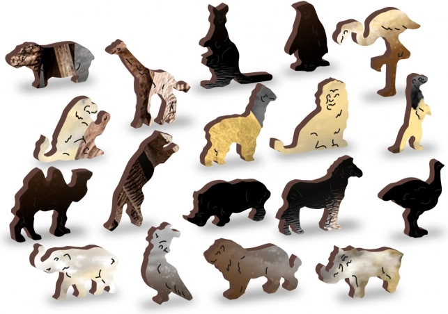 Nogle brikker er omhyggeligt udskåret for at forestille kendte bygninger, genstande eller dyr i tråd med motivets tema.