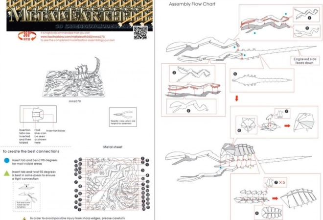 Fra en enkelt stålplade (11 x 11 cm) opstår en betagende model, der vil fascinere enhver forbipasserende. Bygningsprocessen kræver brug af små tang til at bøje fanerne og forbinde de enkelte dele. Anbefalet alder for samling er fra 14 år.
