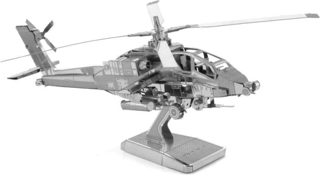 Skab din egen 3D-model af helikopteren AH-64 Apache, som bliver en fantastisk dekoration i hjemmet, på kontoret eller i klasselokalet. Metal Earth 3D puslespil er kendt for sin præcision og detaljegrad takket være lasergravering. Af stålplader med mål på 11 x 11 cm samler du en fascinerende miniature af den berømte amerikanske kamphelikopter, anvendt fra slutningen af den kolde krig til i dag.