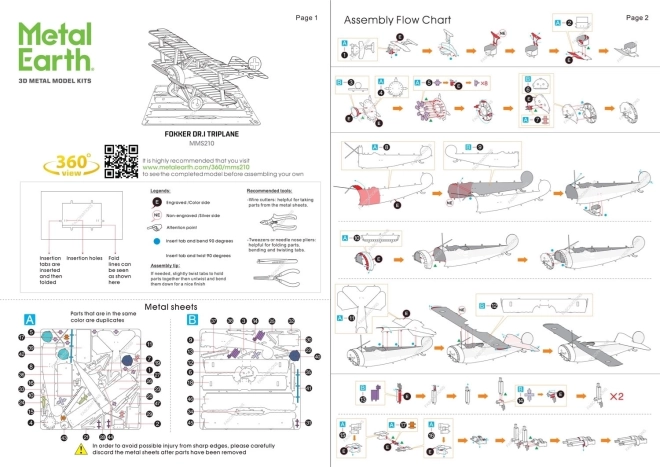 En spændende udfordring, fornøjelsen ved at samle og et blændende resultat – det er METAL EARTH-modeller! Bygning af METAL EARTH 3D-puslespil kræver tålmodighed og snilde. Resultatet opvejer fuldt ud den indsats, der lægges i arbejdet! De miniature replikaer er en særligt imponerende og iøjnefaldende dekoration ikke kun derhjemme, men også på kontoret eller i skolen. Fra kvadratiske stålplader (11 x 11 cm) med dele af verdens monumenter eller berømte transportmidler vokser der under dine hænder detaljerede, fascinerende modeller frem. Den autentiske fremtoning af METAL EARTH 3D-puslespillene opnås takket være detaljeret lasergravering. Pakken indeholder 2 stålplader med dele samt en samlevejledning. Værktøj er ikke inkluderet. ARBEJDSFREMGANGSMÅDE: Tag de enkelte dele ud af metalpladerne; om nødvendigt kan du bruge en lille bidetang (medfølger ikke). Delene forbindes med låse bestående af en tap (krog) og et hul. Bøj tappen med en lille, tynd tang (medfølger ikke), og forbind gradvist alle låse, indtil der opstår et meget realistisk mesterværk! Anbefalet alder: fra 14 år. Mål på det samlede puslespil ca. 8,2 x 10,4 x 4,8 cm